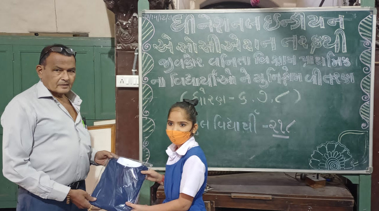 ધી નેશનલ ઇન્ડિયન એસોસિએશન, રાયખડ ,અમદાવાદ ( ladies club) તરફથી આપણી શાળાના શ્રેણી 6 થી 8 ના બાળકોને યુનિફોર્મ આપવામાં આવેલ છે. આપણી સંસ્થા તેમની ખુબ ખુબ આભારી છે.