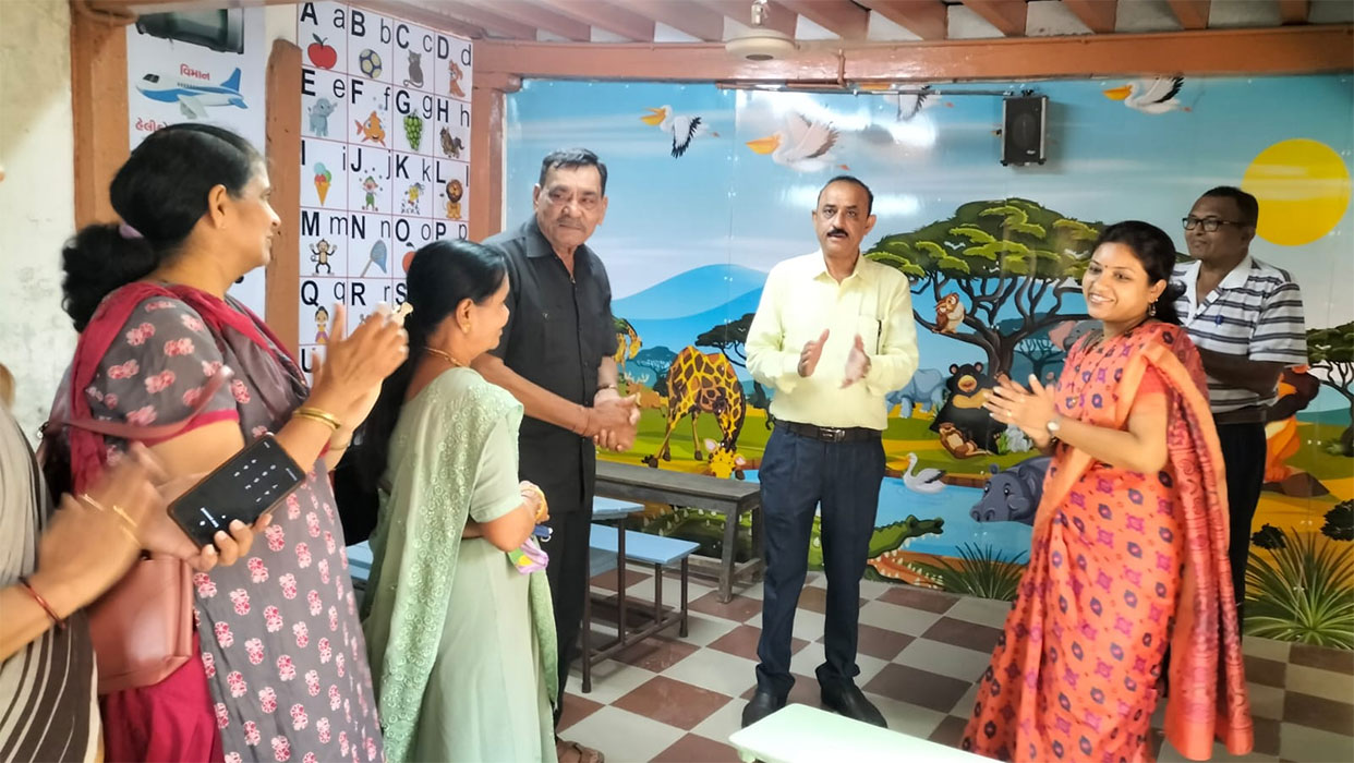 આપ સૌને આનંદ ના સમાચાર જણાવતા ખૂબ જ આનંદ ની લાગણી થાય છે કે શ્રી જીતેન્દ્ર ભાઈ તથા શ્રીમતી રંજનબેન ગોહિલ તેમજ તેમના સુપુત્રો શ્રી દક્ષેશભાઈ ગોહિલ અને શ્રી ધવલભાઈ ગોહિલ દ્વારા અપાયેલ આશરે 2,00,000(બે લાખ) ના અનુદાન થી બાલમંદિર ના તમામ વર્ગોનું સંપૂર્ણ રીનોવેશન વેકેશન દરમ્યાન કરાવવામાં આવ્યું હતું.આજ રોજ તા.13 જૂન,2022 ના રોજ જ્યારે શાળાના નવા સત્રથી શરૂઆત થઈ રહી છે ત્યારે તેમના શુભ હસ્તે બાલમંદિર ના વર્ગોનું ઉદઘાટન કરવામાં આવ્યું જેની કેટલીક યાદગાર પળો...