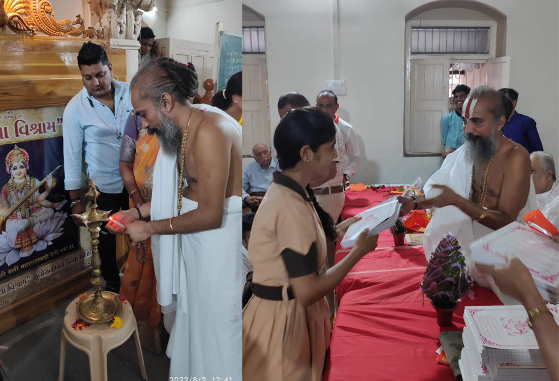 તારીખ 2 /8 /2022 ને મંગળવારના રોજ શ્રાવણ માસમાં ગુપ્તેશ્વર મહાદેવ પરિસરમાં શ્રી જીવકોર વનિતા વિશ્રામ સ્કૂલ માં બાળ મંદિરથી શ્રેણી 12 સુધીના બાળકો માટે દાતા શ્રી ગીરીશભાઈ પટેલ તરફથી શૈક્ષણિક સાધનોનો વિતરણ સમારંભ યોજવામાં આવેલ હતો. જેમાં સંસ્થાના પ્રમુખ શ્રી લવલેશભાઈ મહેતા, મંત્રી શ્રી ગૌરાંગભાઈ જાની, મંત્રી શ્રી જ્યોત્સનાબેન પટેલ ,દાતા ટ્રસ્ટી શ્રી રમેશભાઈ પટેલ, ટ્રસ્ટી શ્રી જ્યોતિષભાઈ ઠાકોર, ટ્રસ્ટી શ્રી નરેશ ચંદ્ર રાજા ,શાળાના આચાર્ય બહેનો, સાહેબ શ્રી આર પી પટેલ તેમજ વનિતા વિશ્રામ પરિવારના તમામ સભ્યો ઉપસ્થિત રહેલ હતા. આ કાર્યક્રમમાં અમદાવાદના હાર્દ સમા શ્રી જગન્નાથ મંદિરના મહંત પરમ પૂજ્ય "શ્રી 1008 દિલીપદાસજી " એ ઉપસ્થિત રહી શાળા પરિવારને આશીર્વાદ આપ્યા. જેના સંભારણા......